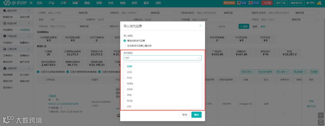 现在,为提升大家的运营效率,妙手ERP优化货代费用及其他成本功能,支持多种货币类型自由选择,减少操作步骤,快速提升卖家朋友运营效率。