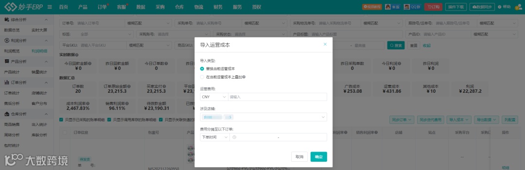同理,如果这部分没有计算到成本里,也将成为影响店铺利润计算不准确的一大因素。而妙手ERP支持导入运营成本的新功能,轻松解决这一问题。卖家导入运营成本时,可以选择替换当前运营成本,也可以在当前运营成本基础上进行叠加,店铺利润计算更准确。