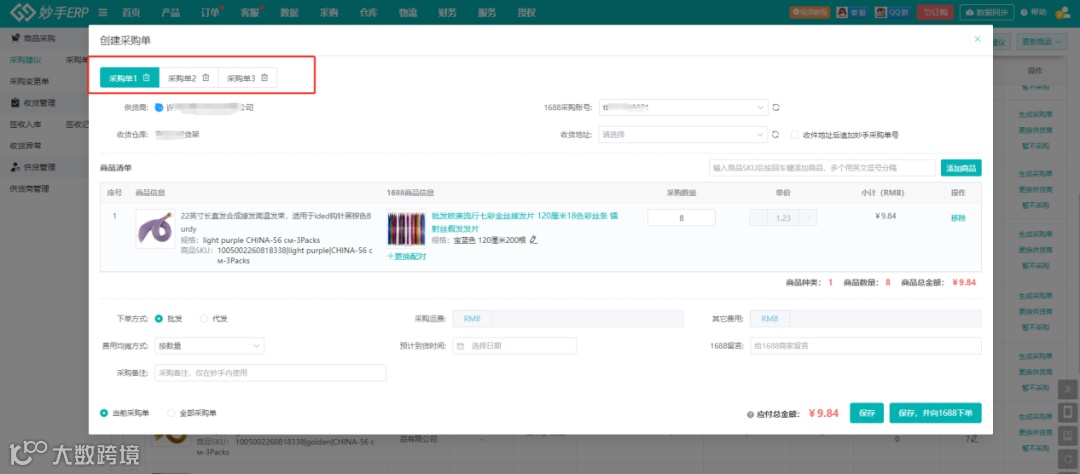针对以上三点,妙手ERP积极响应大家的需求,快速对1688平台采购功能进行了点对点的更新与迭代,帮助卖家朋友高效采购1688平台商品。