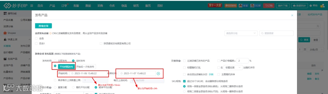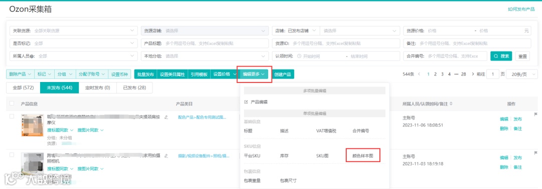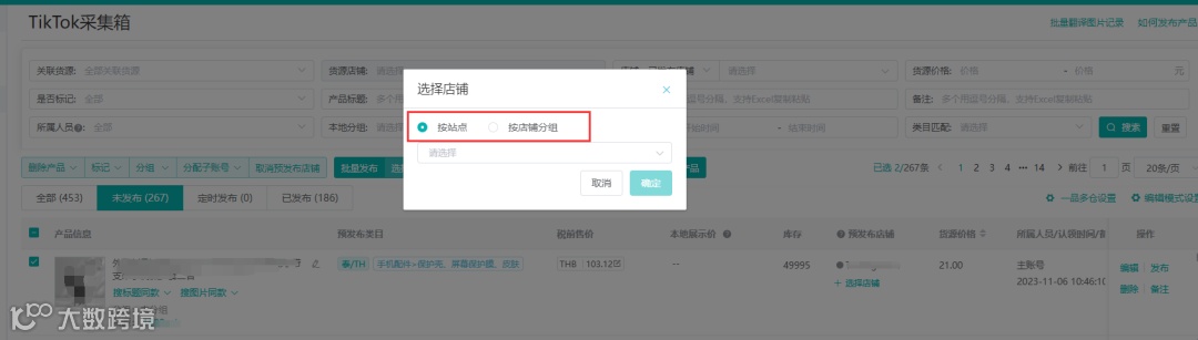 - 采集箱支持按“站点”和“店铺分组”快速选择店铺