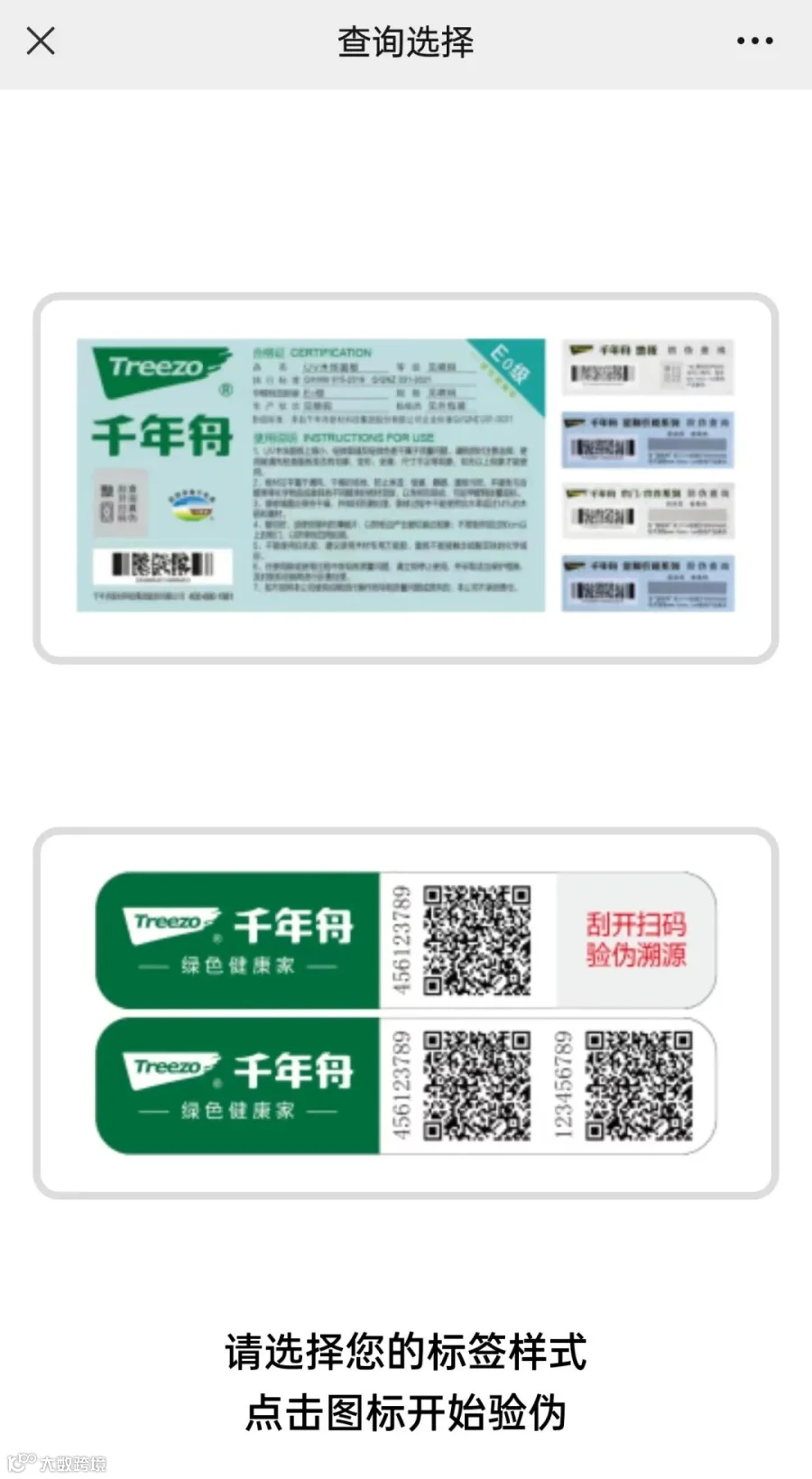 进入防伪码查询页面后,根据标签样式,开始查询。