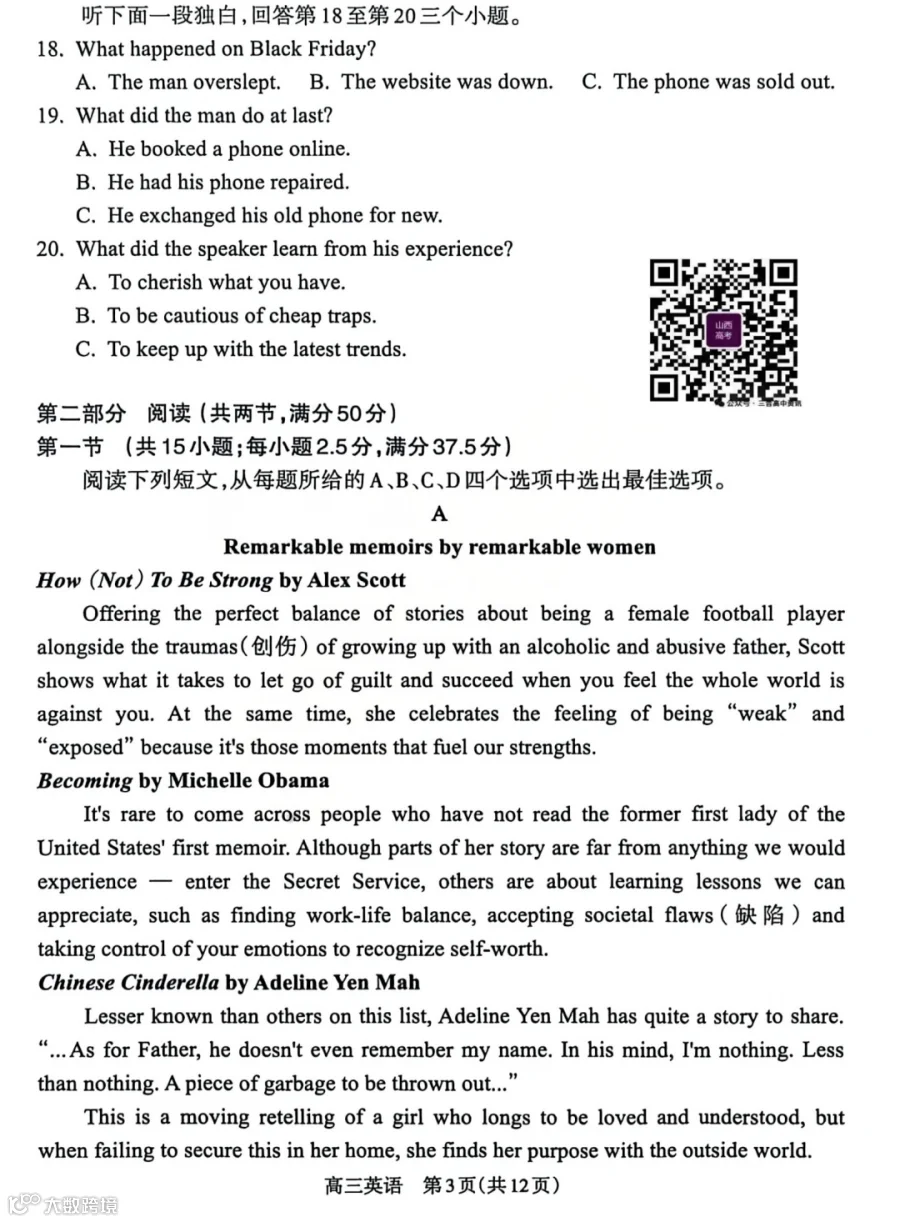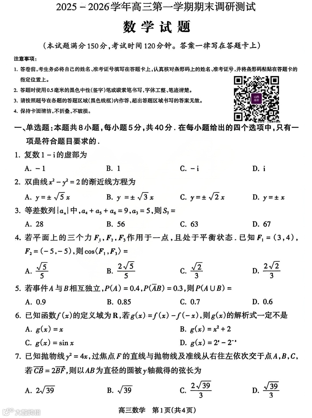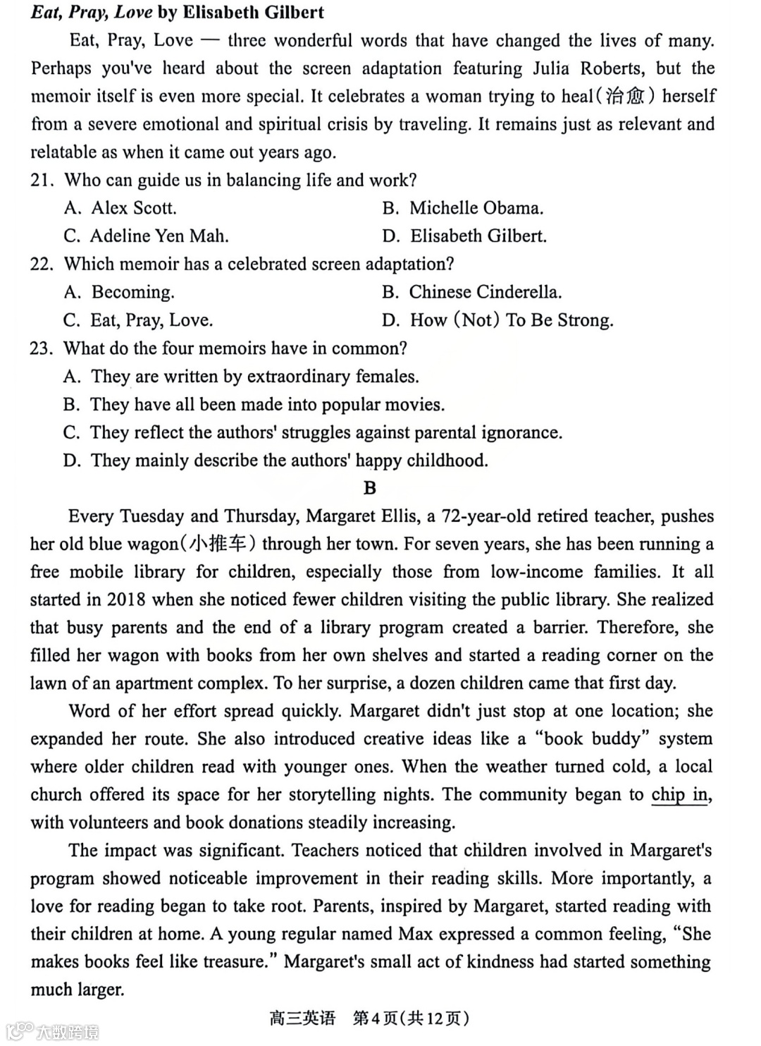 回复“高考一模、高考二模、高考三模、省适应考”,获取对应试题资料