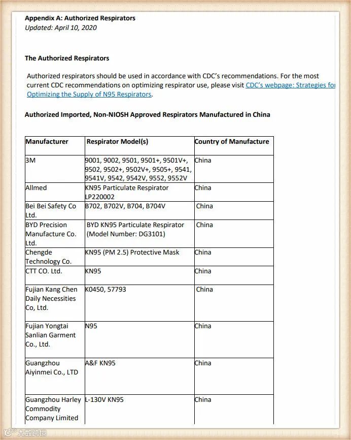 根据FDA最新政策,目前是在满足一定条件的情况下认可中国标准的口罩