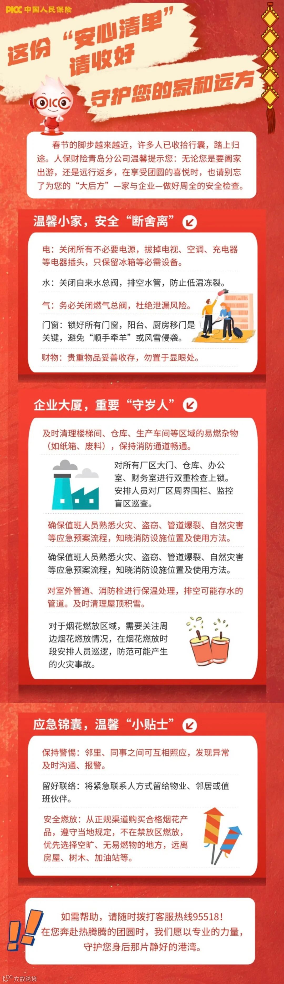 年关将至,人保财险青岛分公司提示您这份“安心清单”请收好