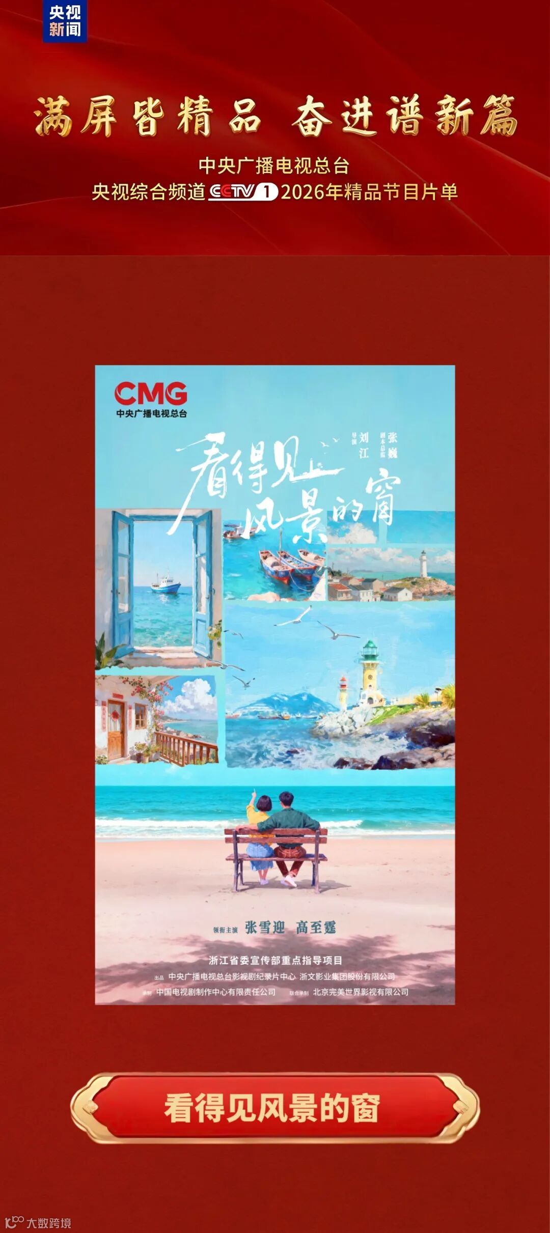 12月16日,央视综合频道2026年精品节目片单发布活动在京举办,60多部兼具思想深度、艺术高度与情感温度的精品力作集中亮相。其中,由中央广播电视总台影视剧纪录片中心、省文投集团旗下浙文影业出品的精品剧集《看得见风景的窗》成功入选片单,引发关注。
