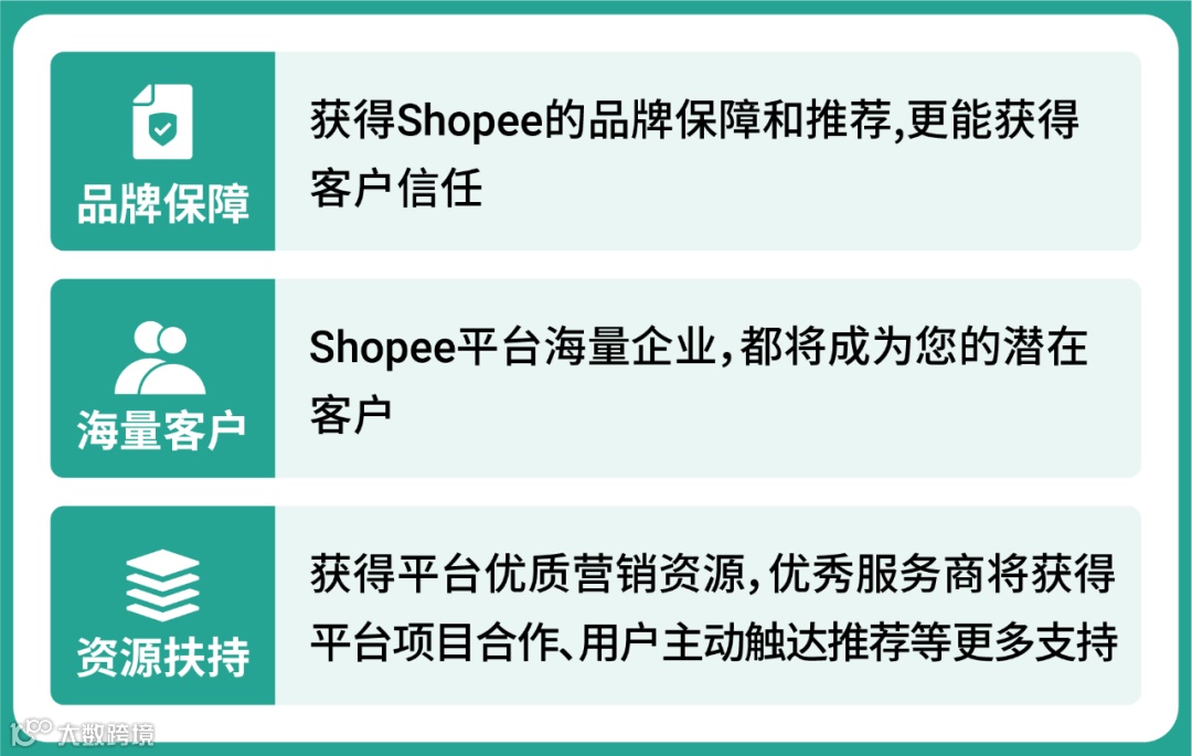 为给卖家提供多种跨境出海方案选择,Shopee服务市场面向优质服务商,招募入驻合作伙伴