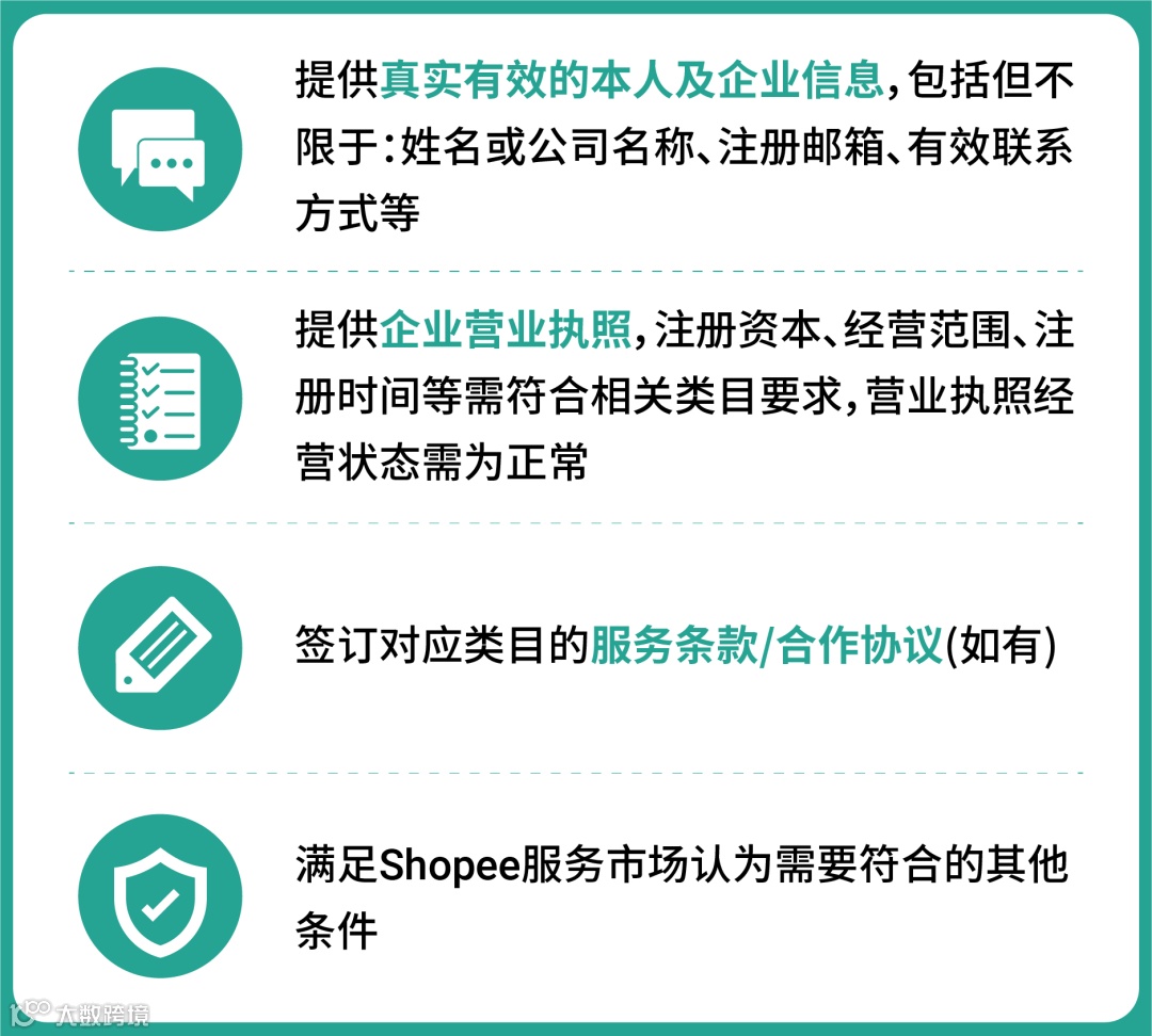 各类目服务商需保证在入驻服务市场、提供相关类目服务期间,满足以下资质要求: