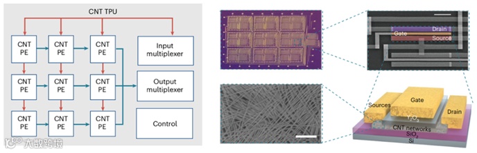 图2:基于碳纳米管晶体管构建的张量处理器(图源:北京大学)