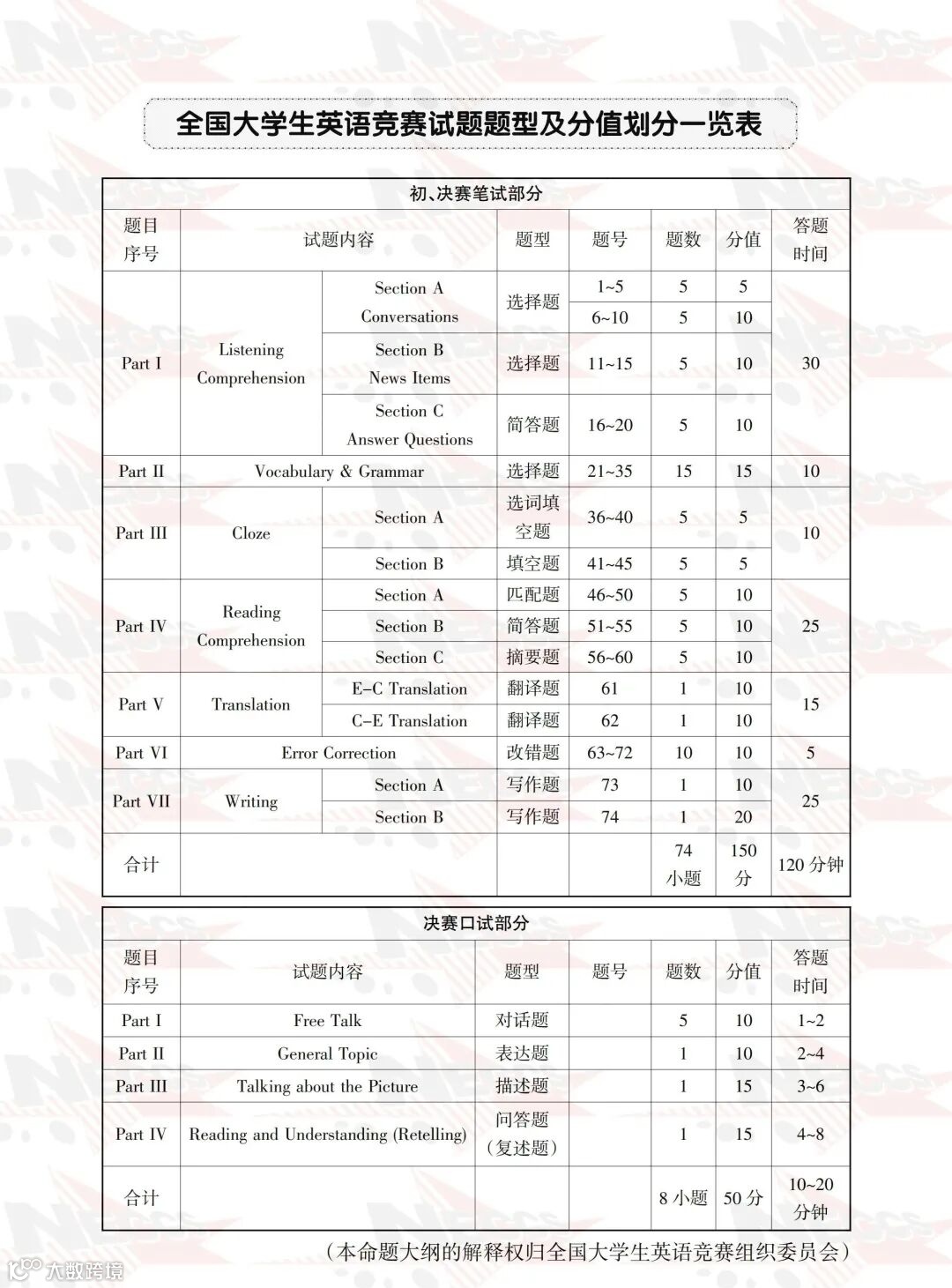 【大英赛题型】2026年全国大英赛题型及分值划分