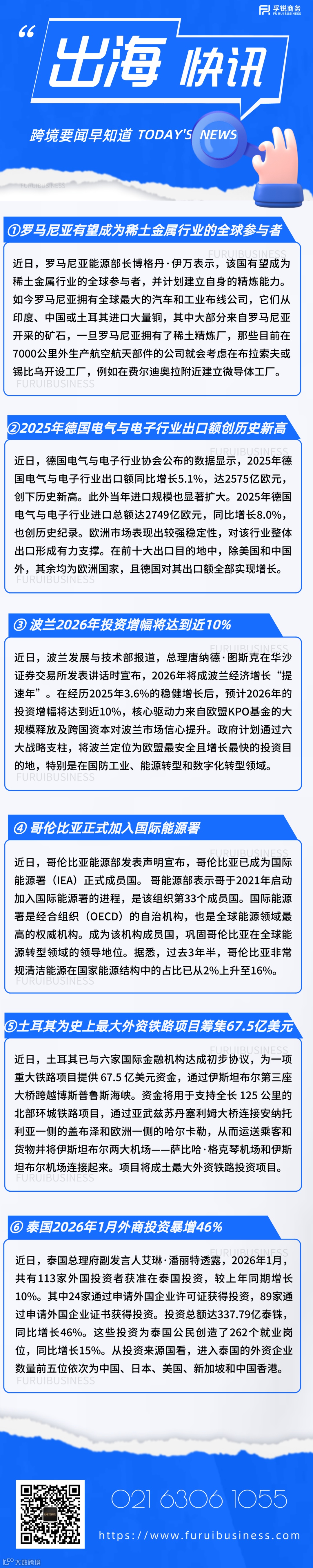 孚锐商务是一家专注跨境企业服务的管理咨询公司,正通过国际化的发展积淀更宽泛的视野和思考,让出海企业投资发展的每一步变得更简单。如有企业出海需求,欢迎添加上方微信咨询了解!