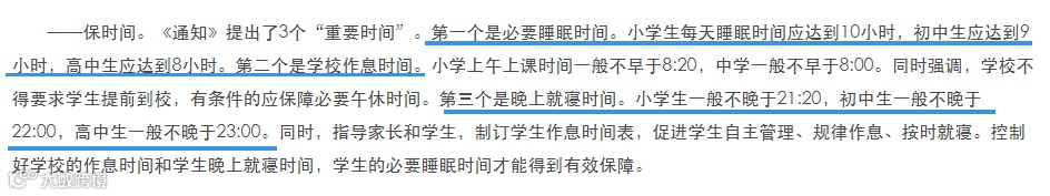 发布的《关于进一步加强中小学生睡眠管理工作的通知》提到