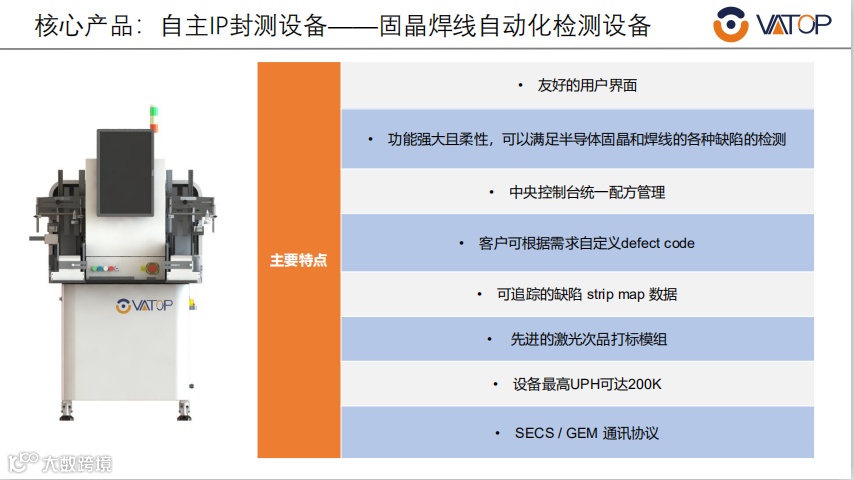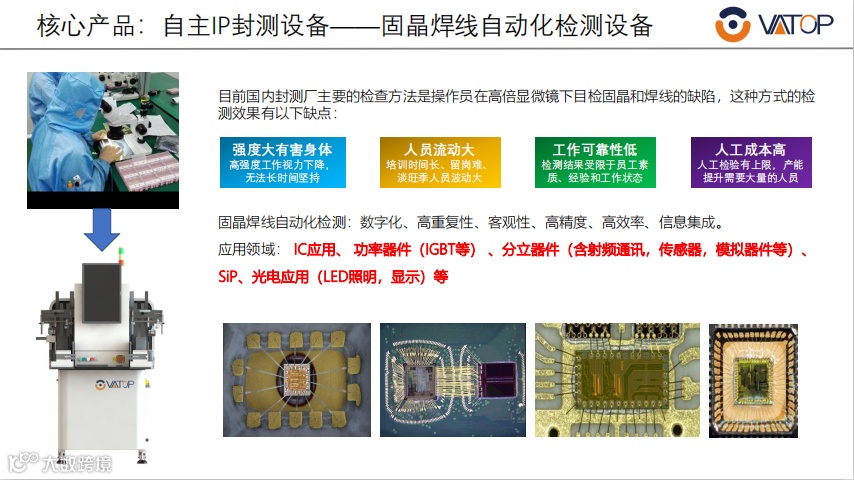 - 核心产品:涵盖半导体固晶焊线检测设备、晶圆检测设备等,支持固晶缺陷、焊线缺陷、成品及晶圆缺陷检测,拥有完全自主知识产权,填补国内细分领域空白。