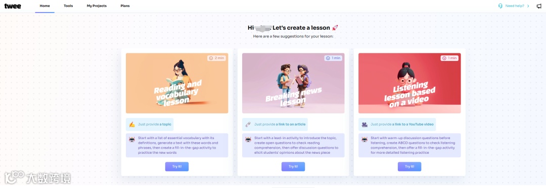 Twee是专门为英语老师打造的备课AI,可根据投喂给它的文章、视频生成启发性的教学问题,也能自动分析解读其中的知识点,还可以自定义生成教学素材和习题,功能非常强大。