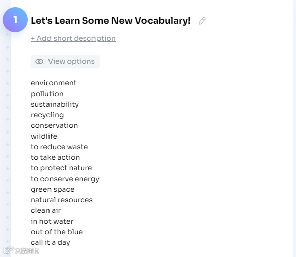 比如,在词汇学习板块,我们输入几个与“环境保护“相关的话题词汇,让Twee推荐更多常用环保话题词汇,拓展学生的词汇积累。