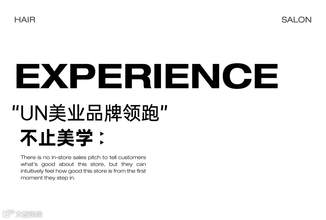 “极致而独特的第三空间休息区““一家能吃面的美发店”“拥有时尚秀场+咖啡体验的美业黑珍珠”。从UN个性主理人、时尚引领,极致服务与艺术氛围中获得超预期体验。情绪价值拉满,是一种品牌的表达,一种隐喻,更是一种全新美业理念的传递。
