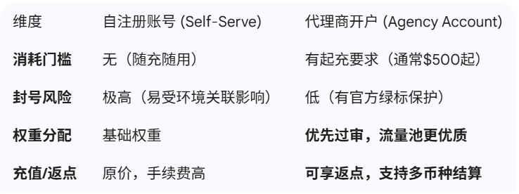 个体户/个人: 个人开户权限在2026年已基本关闭,仅保留极少数特定地区的自注册渠道。建议通过“代理商通道”以企业身份入驻,以获得更高的权重和稳定性。