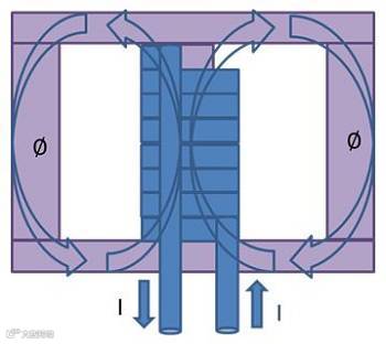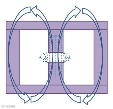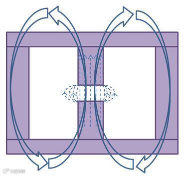 图15与图16显示变压器漏磁通分布。气隙区域存在大量漏磁(虚线),部分垂直穿过周边空间,可能干扰上方或下方元件。