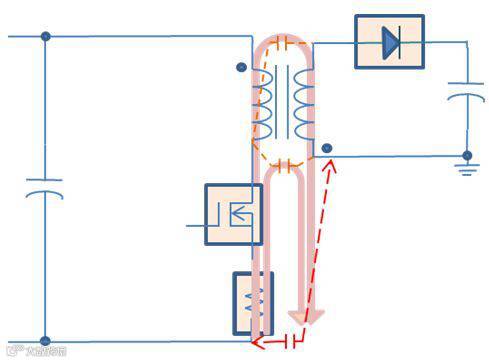 变压器初级与次级间存在层间电容,开关瞬间的高压变化(dV/dt)通过该电容耦合电流,引发共模干扰。绕组电位差越大(如MOSFET Drain端),耦合越强。