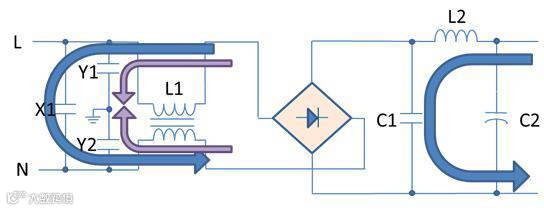 差模滤波由X电容与差模电感(L1/L2)构成;共模滤波由共模电感与Y电容组成。需明确干扰类型,针对性设计。