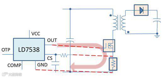 辅助绕组(Vcc)回路应短而紧凑,避免形成大环路天线。IC供电引脚附近应放置0.1μF MLCC电容,就近接地,以滤除高频噪声。