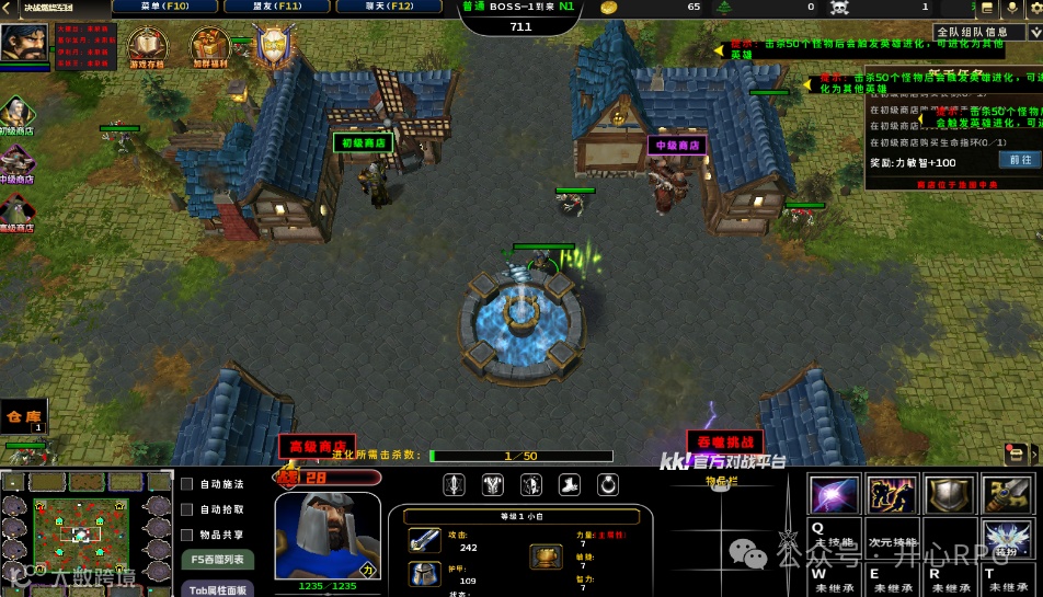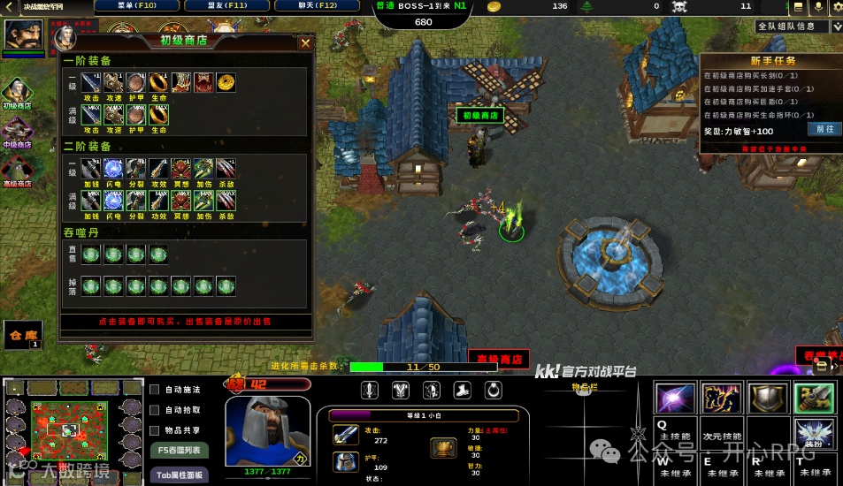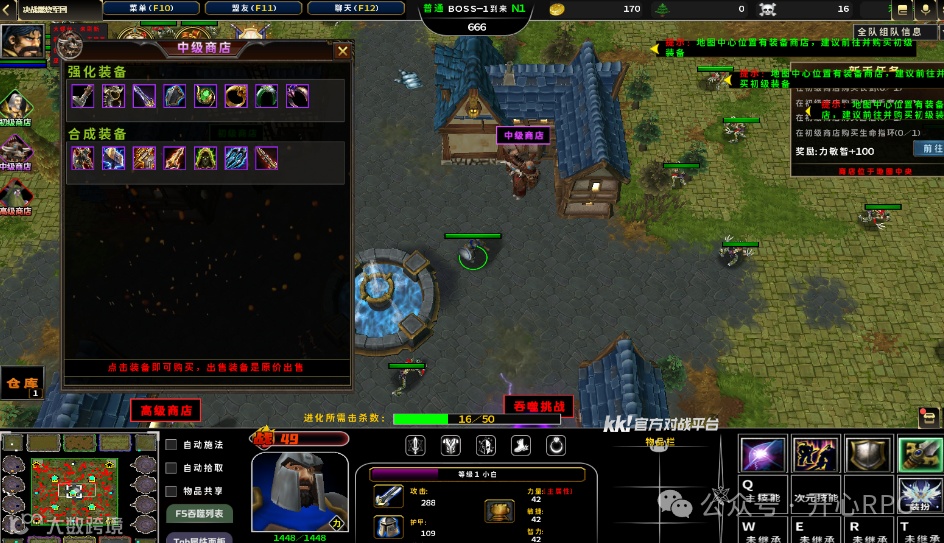 玩家还可通过中级与高级商店购买或合成更高级装备,越高等级的装备带来的属性加成越高。地图四角设有专属商店,可使用木材资源购买加成药水增强战斗力。