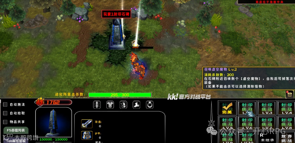 地图中还加入了【封印石】机制,消耗杀敌数可挑战封印怪物,成功击败后能获得次元装备,可用于特定栏位,但相同类型只能佩戴一件。