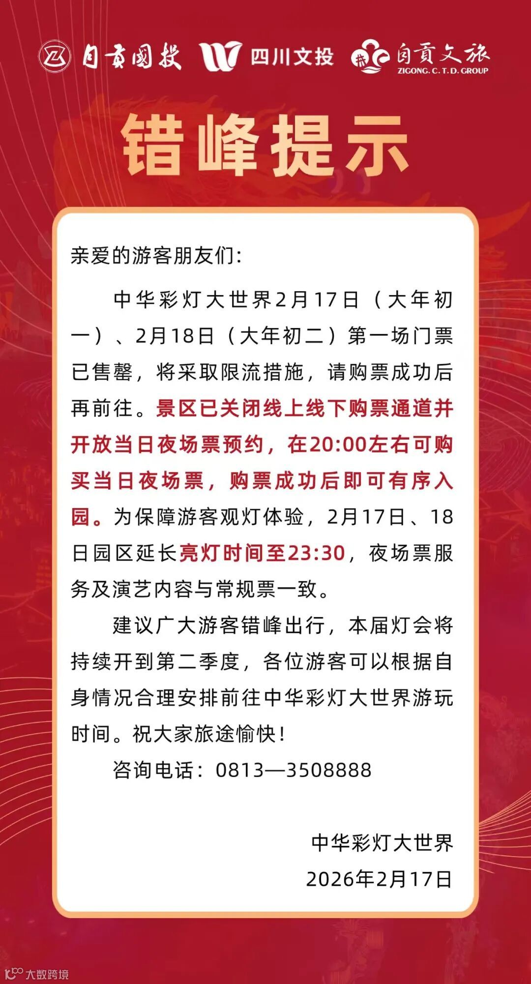 中华彩灯大世界错峰提示