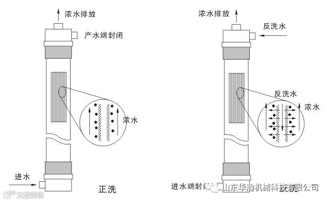 - 所有清洗剂须从进水侧进入,防止杂质进入膜丝内部。