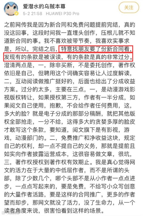 《诡秘之主》作者爱潜水的乌贼参与发声