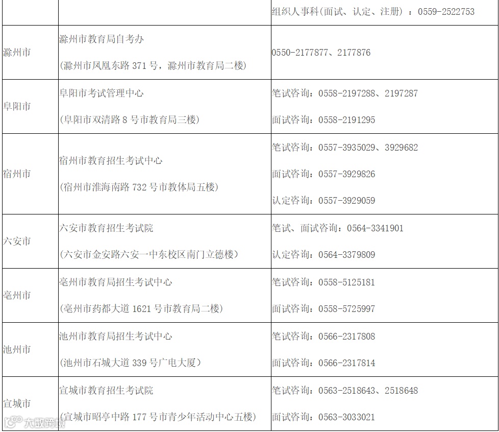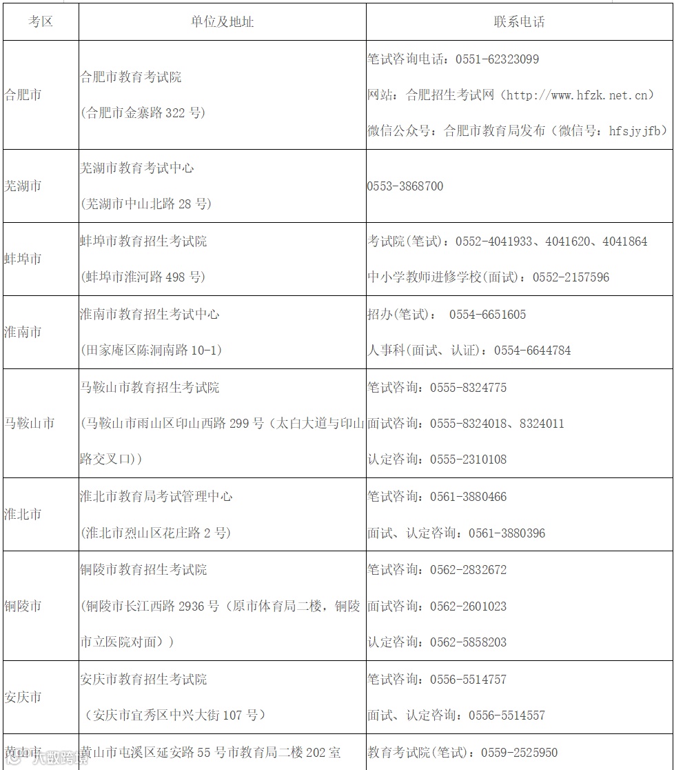 (八)政策咨询电话:0551-64495743、64495938,笔试报名期间考务咨询电话:0551-63611207。