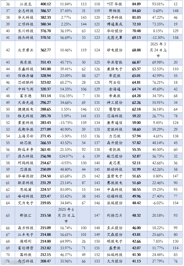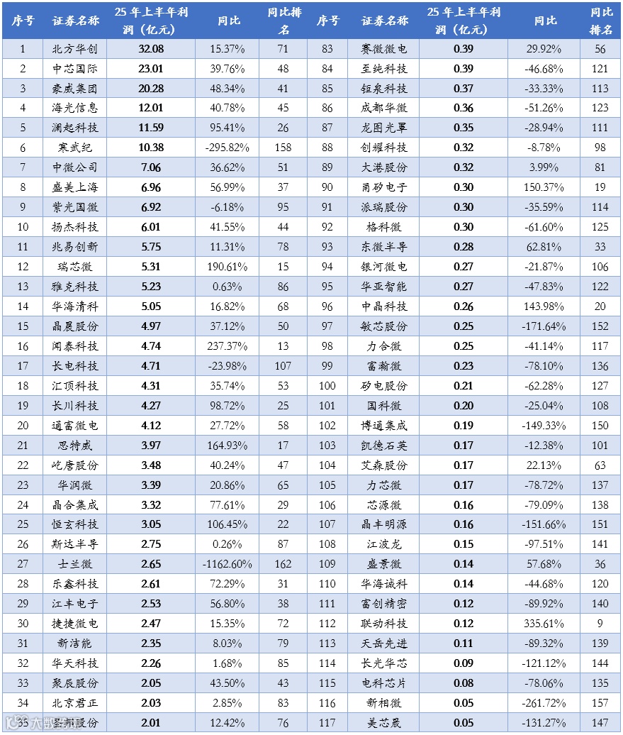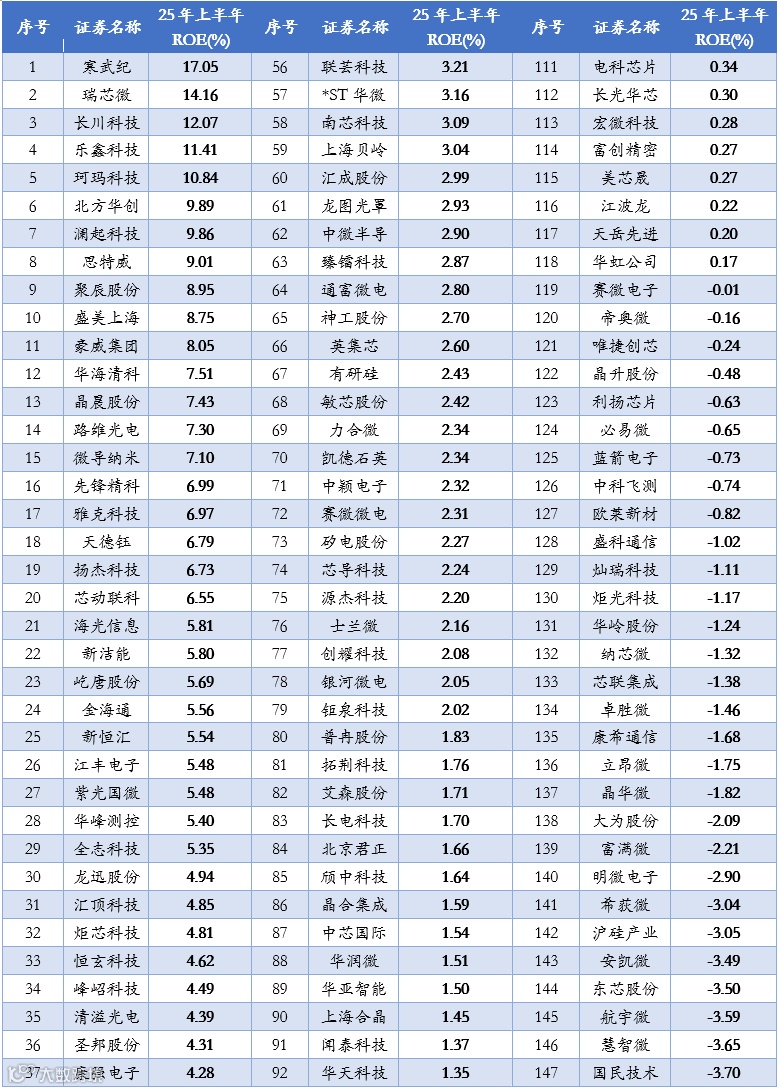 2025年上半年,79家半导体企业的半年度净资产收益率(ROE)超过2%,显示出较强的资本运作效率和盈利质量。