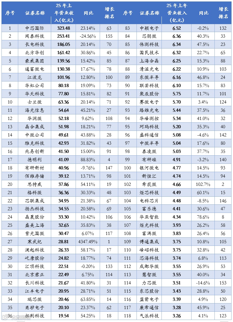2025年上半年,163家半导体企业中有131家实现营业收入同比增长,整体营收达3,206.25亿元,同比增长15.61%。