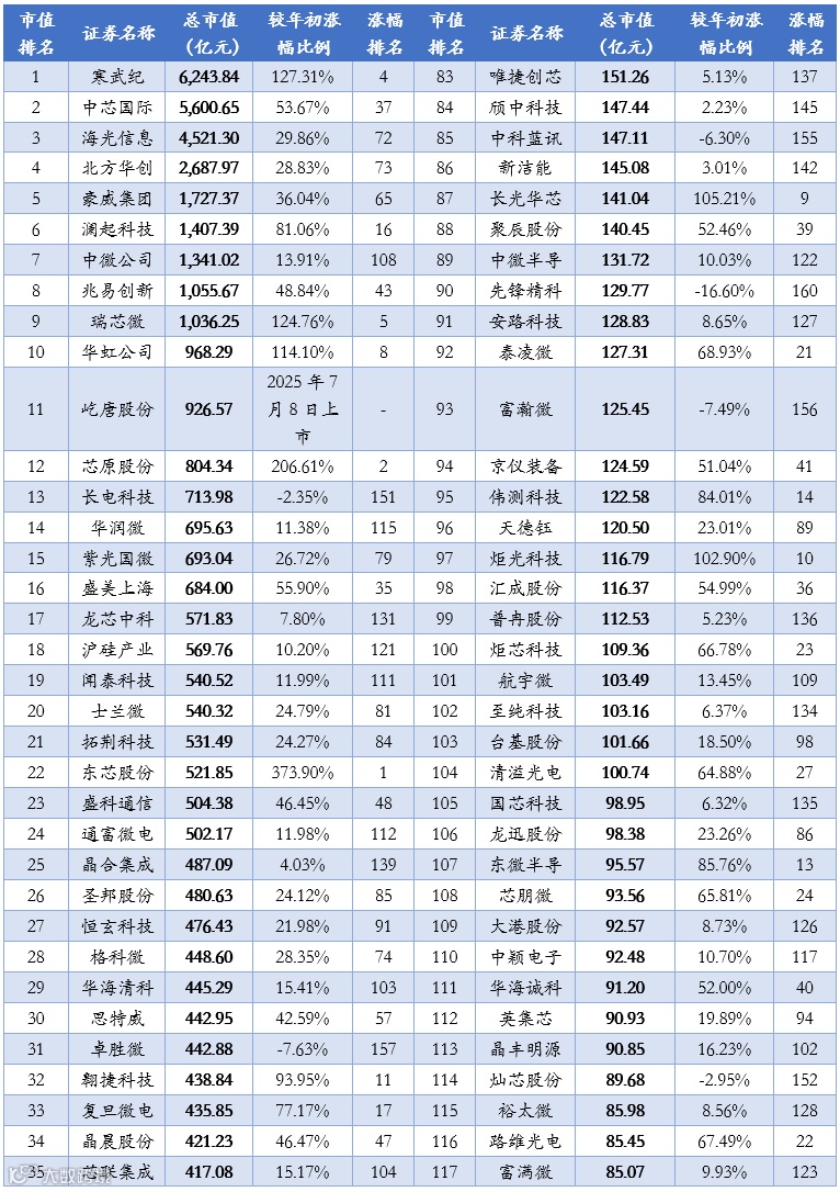 截至2025年8月31日,163家半导体上市公司中148家股价上涨,总市值达5.88万亿元,整体涨幅达43.77%,市场信心强劲。