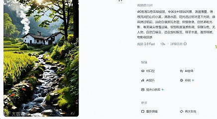 例如,针对“炊烟”的图片,可以输入:“镜头缓慢推进,炊烟袅袅升起,微风轻轻吹动烟雾的形状”