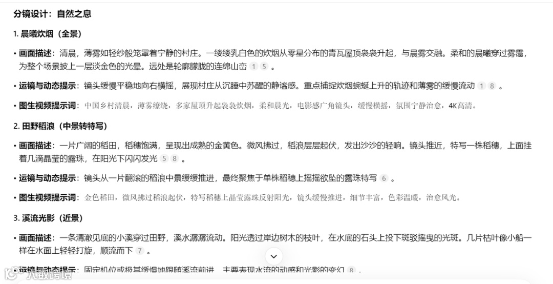 接着,把AI给到的提示词给到AI绘图工具生成分镜图