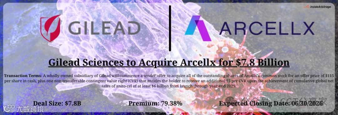 2026年2月,吉利德科学宣布以78亿美元总交易价值收购Arcellx,成为其自2020年210亿美元收购Immunomedics以来的最大手笔,亦是近年来CAR-T领域规模最大的收购案。消息一出,Arcellx股价盘前暴涨近80%,传奇生物股价同步上涨10%。作为深耕药械出海领域的专业团队,我们从产业布局、资产价值、交易逻辑及行业趋势维度,对此次收购进行深度拆解,为药械企业全球化布局提供参考视角。