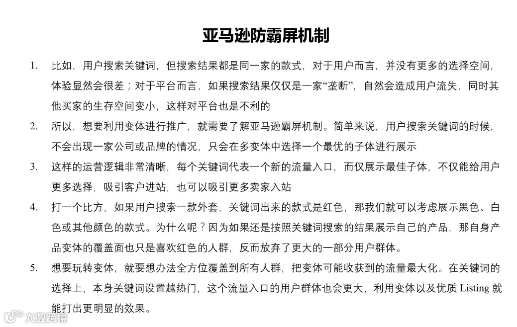 4.变体之间的广告相互竞争怎么办 亚马逊的父子体排名机制决定了,在同一个父体下,一个关键词的广告位,通常只有一个变体会优先展示,即使是单独为每个变体投放相同的词+bid,前台也只会展现表现更好的那个,紧接着根据表现,子体的广告位顺延第二页第三页。 我们打广告的终极目标是通过付费流量提升关键词排名,最终实现主要靠自然流量出单。