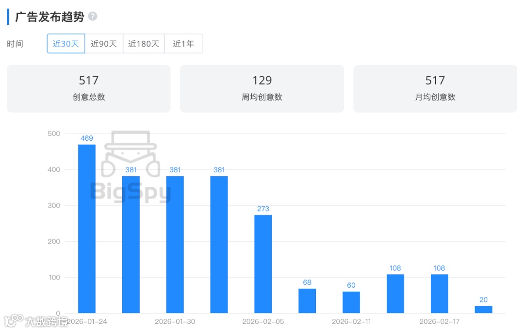营销素材类型中,视频占比超过71%,主要用来传递产品的核心卖点;图片素材占比偏低,用于有奖活动;视频的代入感更强,适合展示产品的功能性,比如收纳能力;图片素材制作成本低、传播快,适合用来拉新互动。这样的搭配能最大化利用素材资源,控制营销成本。