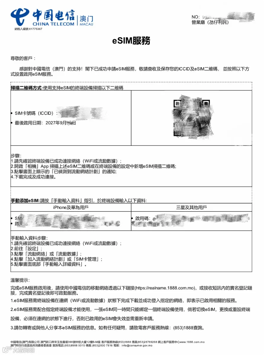 并非所有中国电信澳门门店均熟悉eSIM转换业务,推荐前往氹仔利民分店,工作人员业务熟练、服务专业。