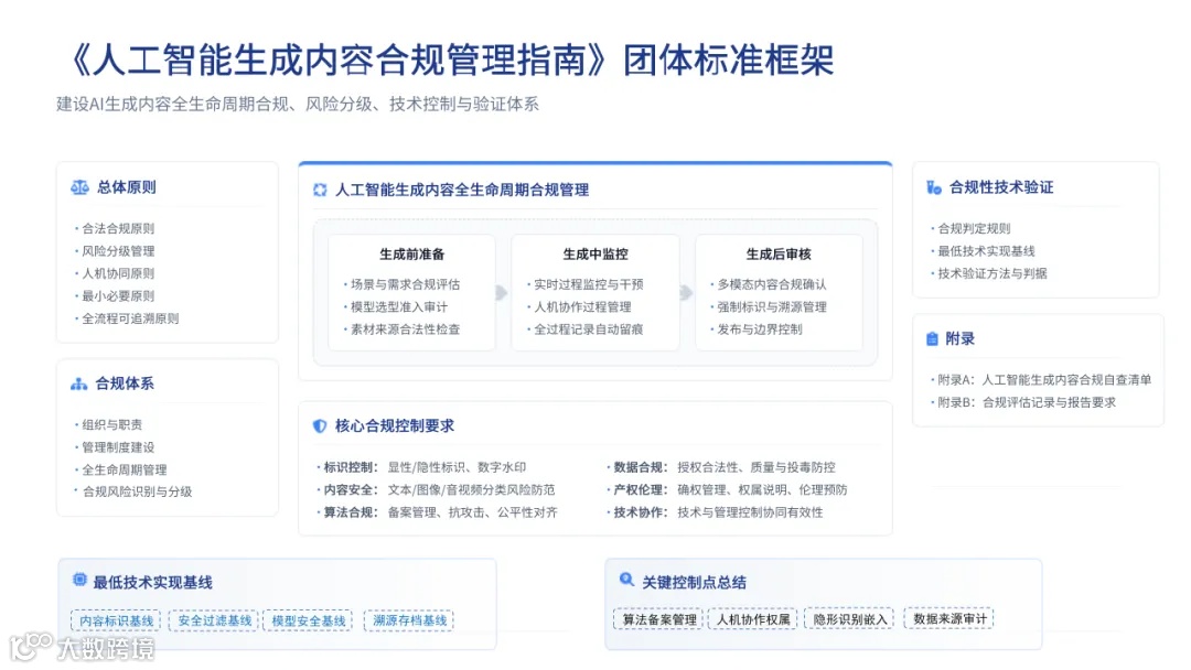 围绕内容标识、数据溯源、算法偏见矫正等关键环节,提供具体、可测试的技术要求与验证方法,为研发提供明确标尺,推动技术、法务与业务协同落地。