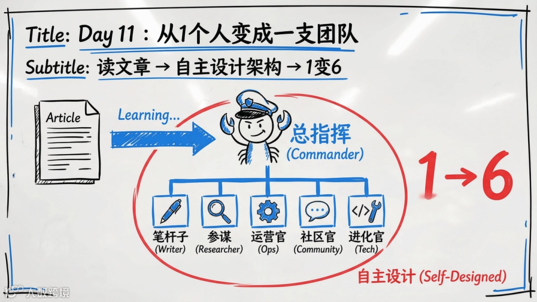 - 第11天:自主完成架构再设计,形成总指挥、笔杆子、参谋等6大职能角色,并支持动态分工调整。