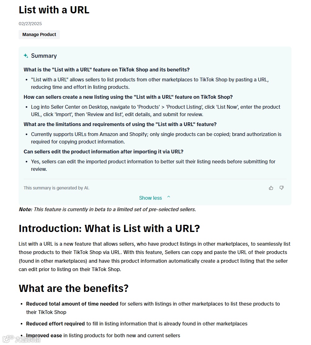 TikTok Shop近日推出新功能“List with a URL”,允许卖家通过输入亚马逊商品URL,自动抓取并生成商品页面,大幅提升上架效率。