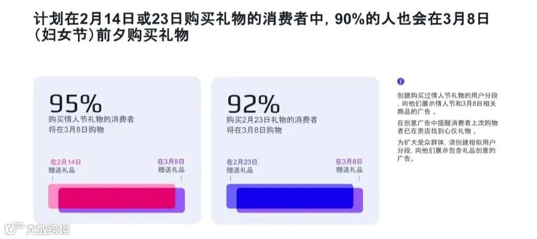 数据显示,在计划为情人节或男人节购礼的用户中,超90%会在三八节前再次采购。前期节日行为可有效预判后续消费意向,广告主可通过持续触达与系统化布局,实现递进式转化与用户价值最大化。