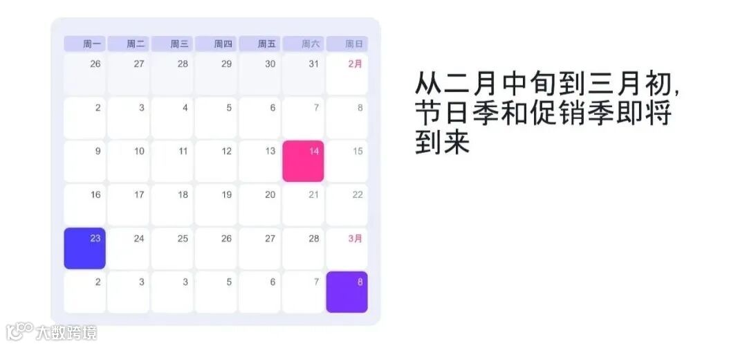 每年2月中旬至3月初,俄罗斯市场将迎来情人节(2月14日)、祖国保卫者日(2月23日,又称“男人节”)和国际妇女节(3月8日)三大节日,形成一段密集、连续且爆发力强的消费旺季。