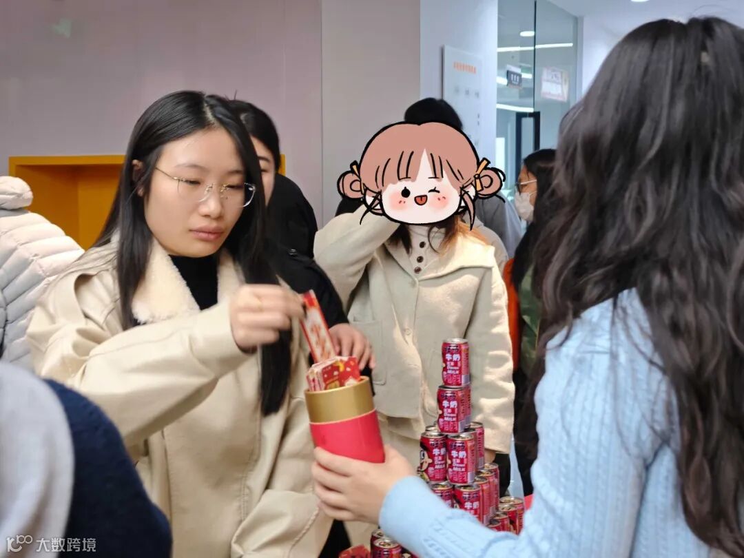上午10点,米客跨境办公区张灯结彩,洋溢着浓厚的节日氛围。行政部推出装饰精美的“好运手推车”,车上整齐摆放开工红包与礼品盒。活动采用趣味抽签形式,每位员工依次上台抽取专属开工惊喜。