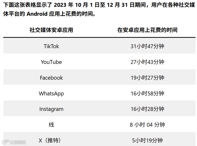 单次会话平均停留时长为7分37秒,居全球主流社交平台首位;TikTok为5分52秒,Facebook为3分44秒。