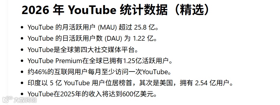YouTube迎来21岁之际,其2026年核心数据揭示出与大众认知不同的发展逻辑。