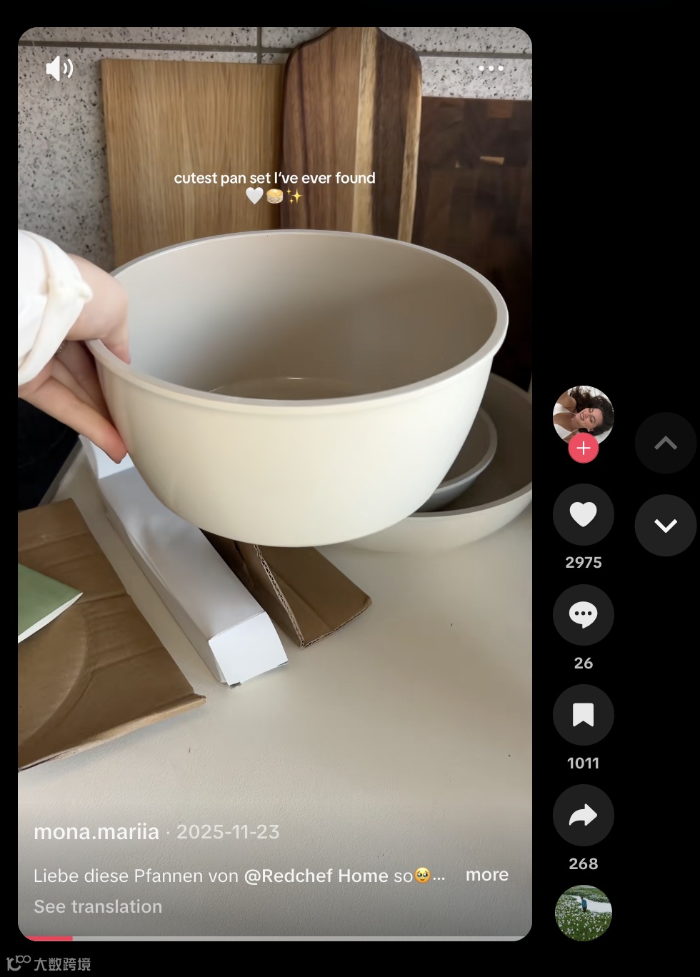 在厨房品类成为中国品牌出海新增长点的背景下,品牌正从功能型测评转向“生活方式内容”建立用户认知。甜点与美食类创作者通过真实使用场景,更易引发海外用户代入感。