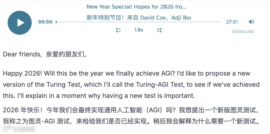 吴恩达在《The Batch》新年特刊中直指“AGI”概念被严重滥用,并提出“图灵-AGI测试”,重构AI能力评估框架;斯坦福HAI联合计算机、医学、法律、经济学等领域学者,强调:2026年的核心命题是——“在什么场景下、以什么成本、替谁承担风险”。