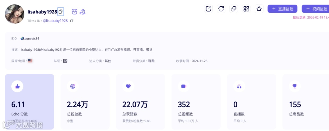 据Echotik数据,该产品已建联达人超1060名。其中,达人lisababy1928一条纯自然流视频带动销量9600+件。
